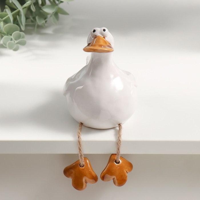 Фигурка настольная керамика «Белый утёнок с висячими лапками», на полку, 8.6×11.1×12.1 см
