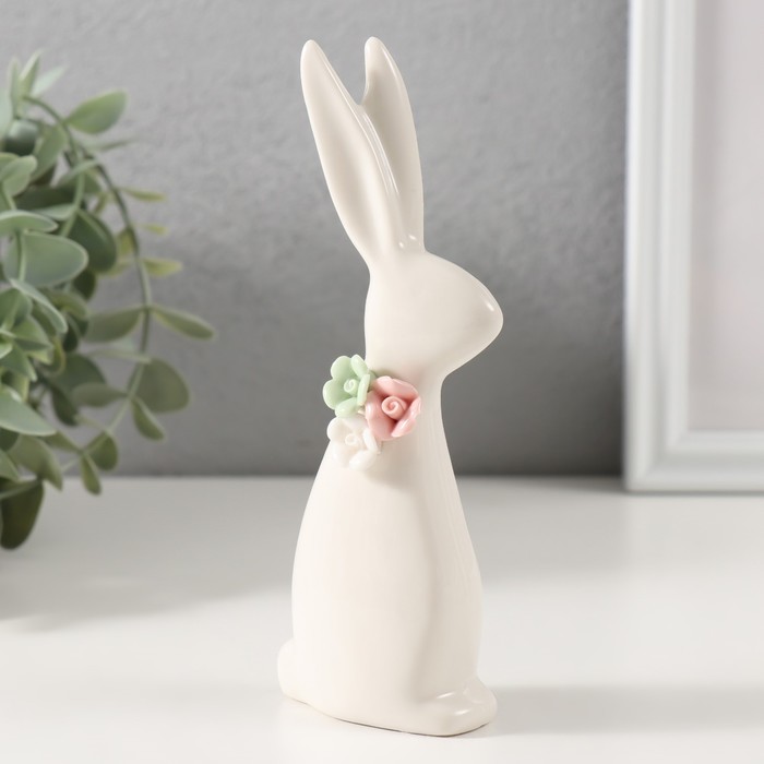 Фигурка керамика «Зайчик белый с цветочками», 6×2.8×15 см