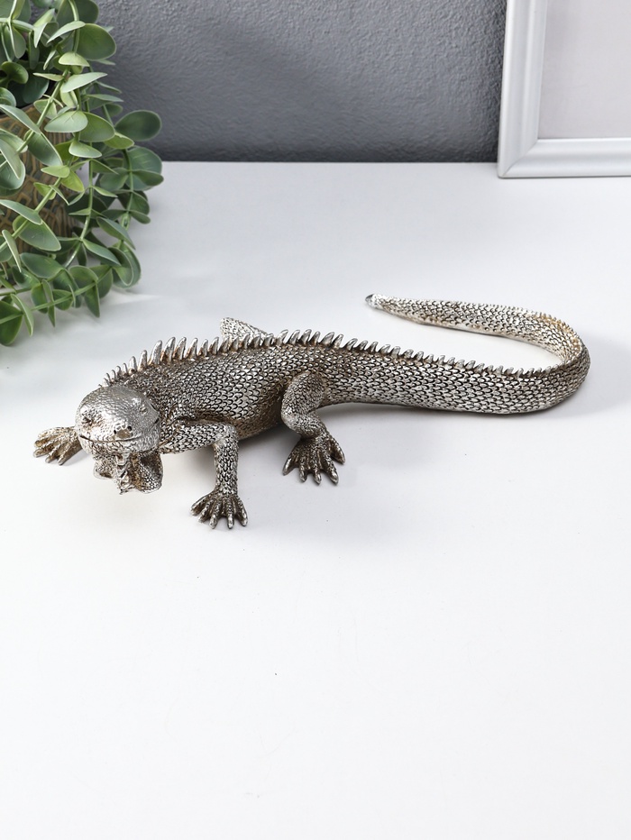 Фигура полистоун «Игуана», под чернённое серебро, 25.2×12.2×7 см