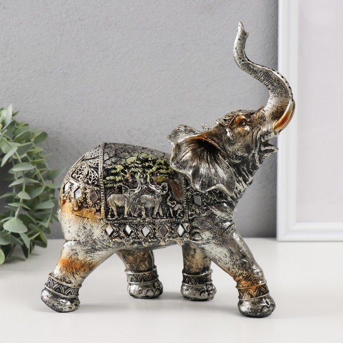 Фигура полистоун «Африканский слон, на попоне слоны», 23×20.5×8.5 см
