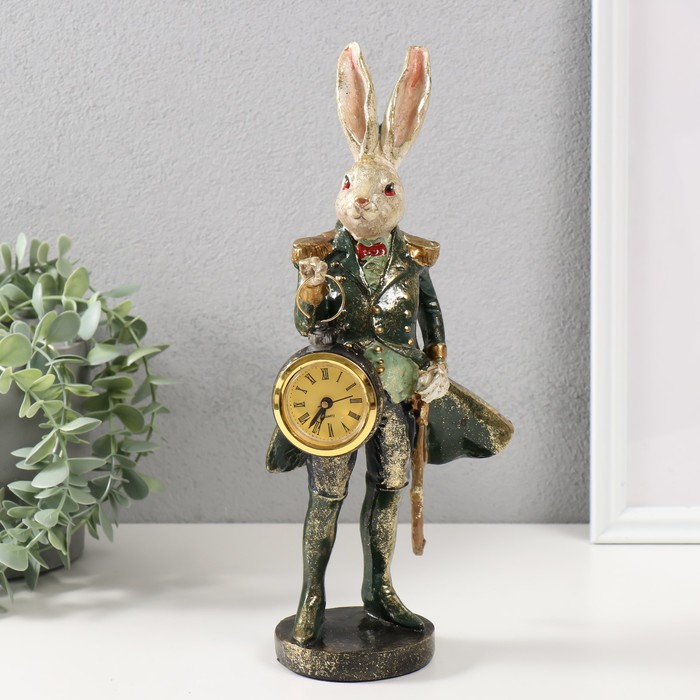 Фигурка - часы настольные полистоун Заяц в военном камзоле», 9.5×12×30 см