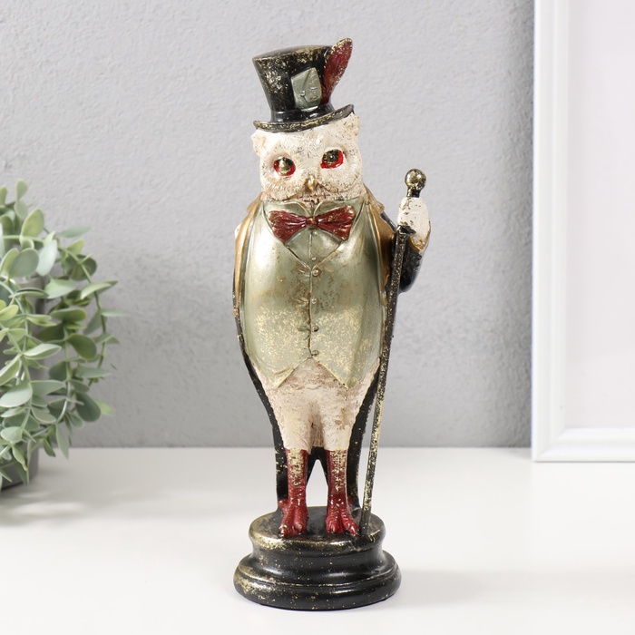 Фигурка полистоун «Филин в цилиндре с пером, с тростью», 12×10×30 см