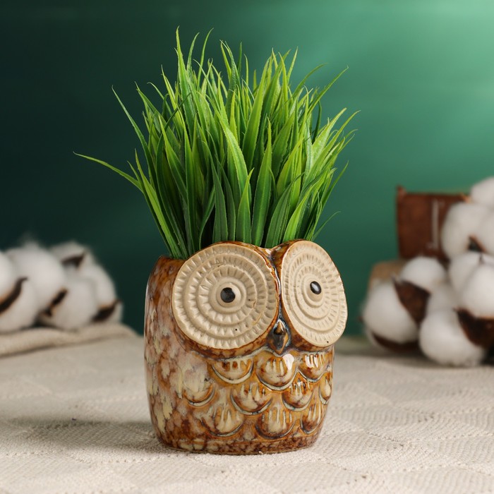 Декоративный горшок для цветов «Совенок» керамический, 200 мл, 8×7×8 см, бежевый