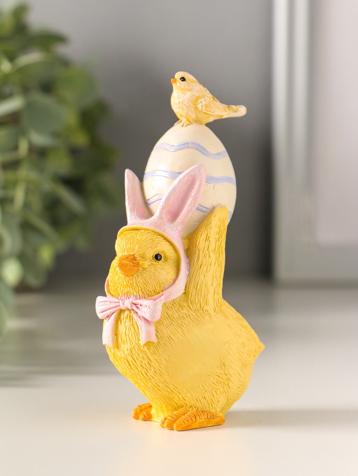 Фигурка полистоун «Цыплёнок в розовой шапке с заячьими ушками несёт яичко», 10.5 см