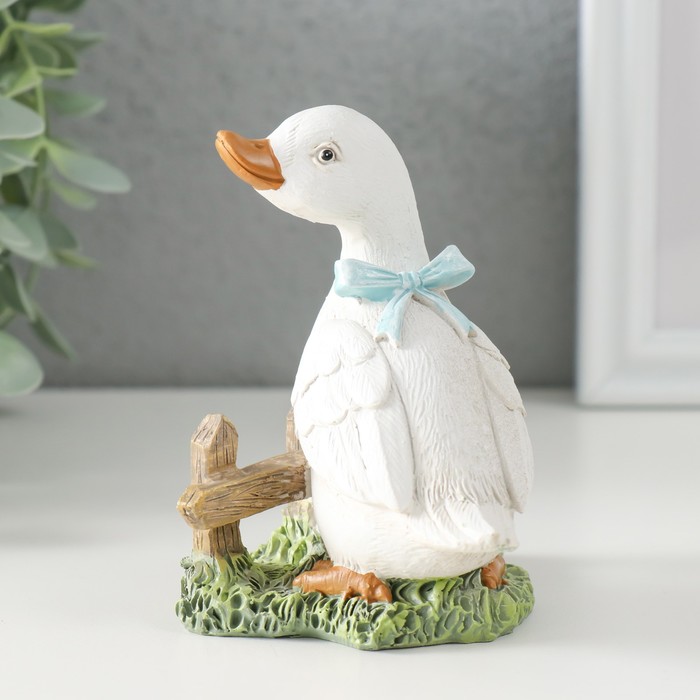 Фигурка полистоун «Гусёнок с голубым бантом у забора» 9×8×10 см