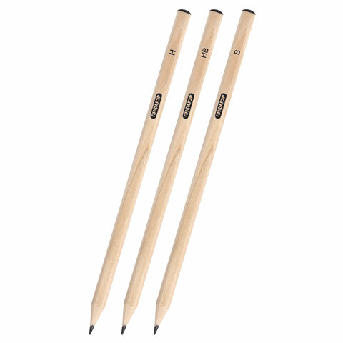 Карандаши чернографитные чертежные школьные разной твердости, НАБОР 3 штуки: Н, НВ, B