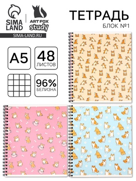Тетрадь А5, 48 л на спирали, внутренний блок №1 МИКС Корги
