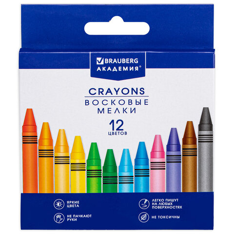Восковые мелки BRAUBERG "АКАДЕМИЯ", НАБОР 12 цветов