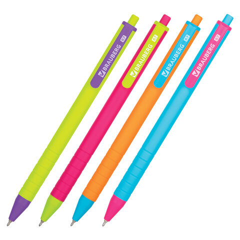 Ручка шариковая автоматическая BRAUBERG "MIX", СИНЯЯ, корпус ассорти, узел 0,7 мм, линия письма 0,35
