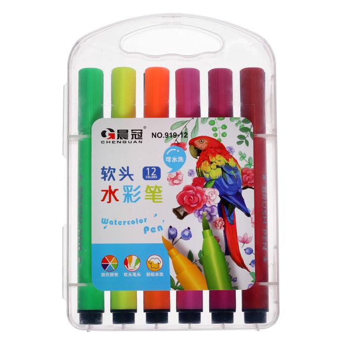 Фломастеры 12 цветов в пластиковом пенале, треугольные, толстые, вентилируемый колпачок