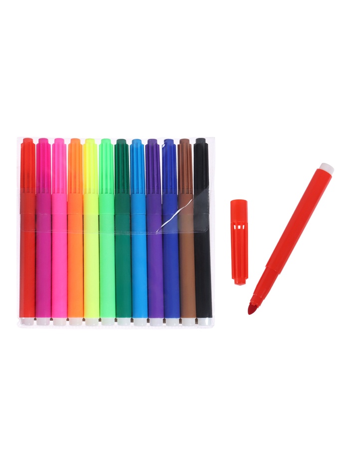 Фломастеры 12 цветов, толстые, вентилируемый колпачок, МИКС