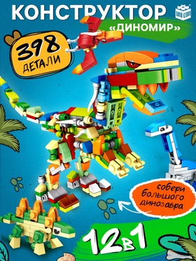 Конструктор Дино мир, 12 в 1, 398 деталей