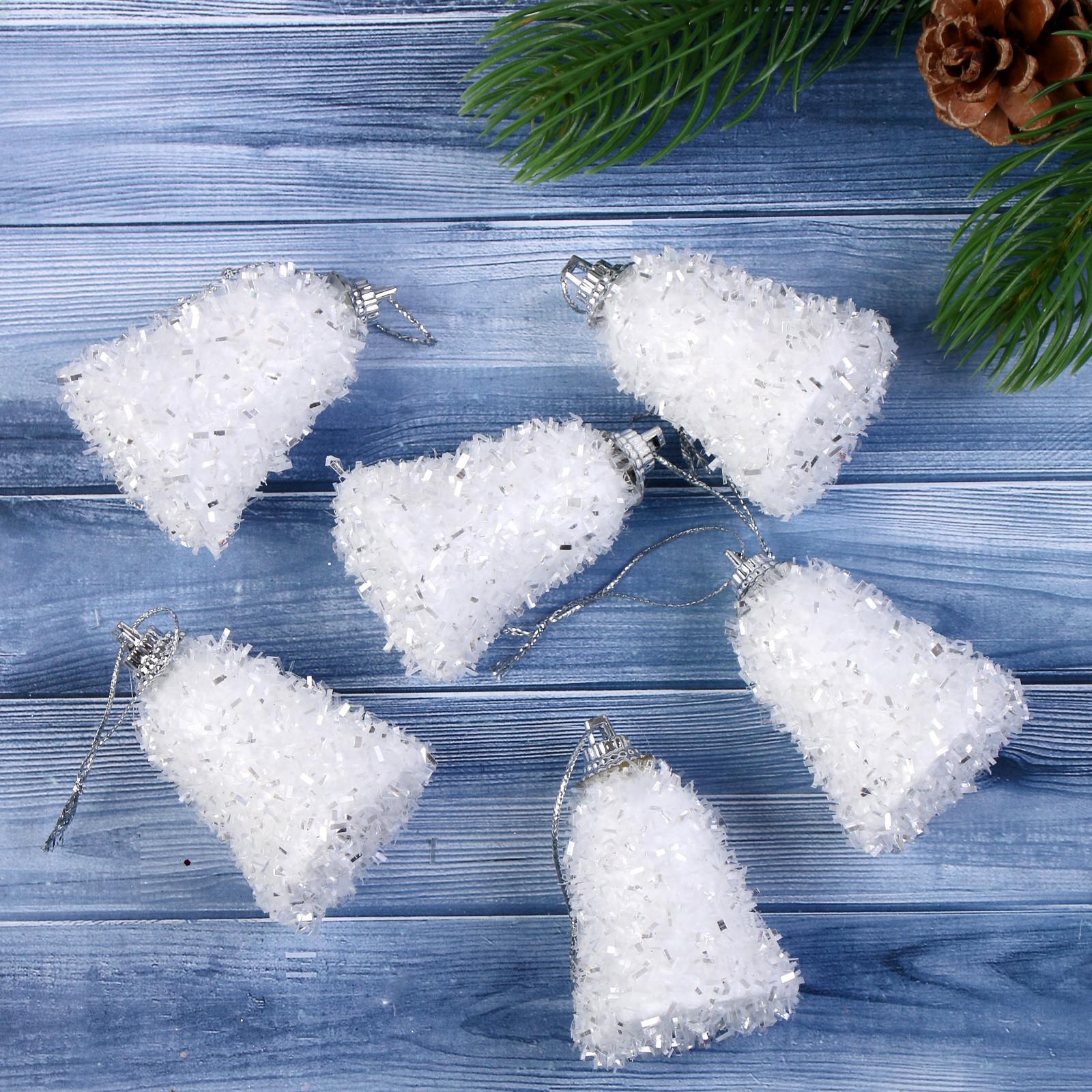 Ёлочные игрушки 6 шт. «Зимнее волшебство. Снежные колокольчики» пластик, 4х4,5 см, белый