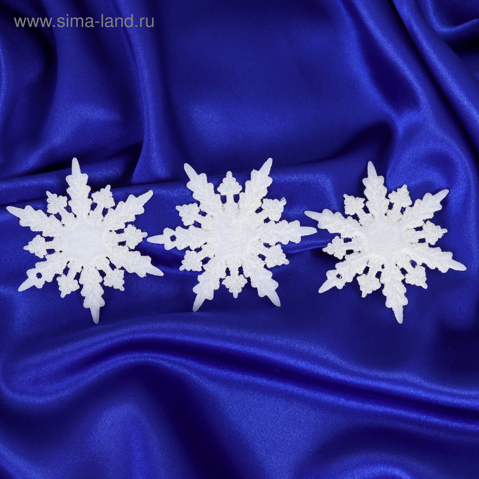 Ёлочные игрушки набор 3 шт. «Зимнее волшебство. Снежинка - морозный блеск» пластик, d-6 см, белый
