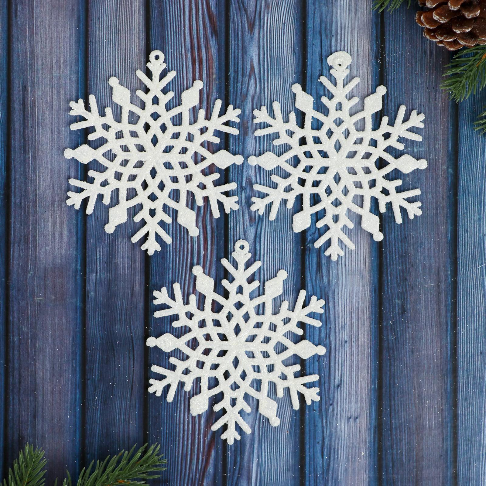 Ёлочные игрушки 3 шт. «Зимнее волшебство. Снежинка - зимнее мерцание» пластик, 10 см, белый