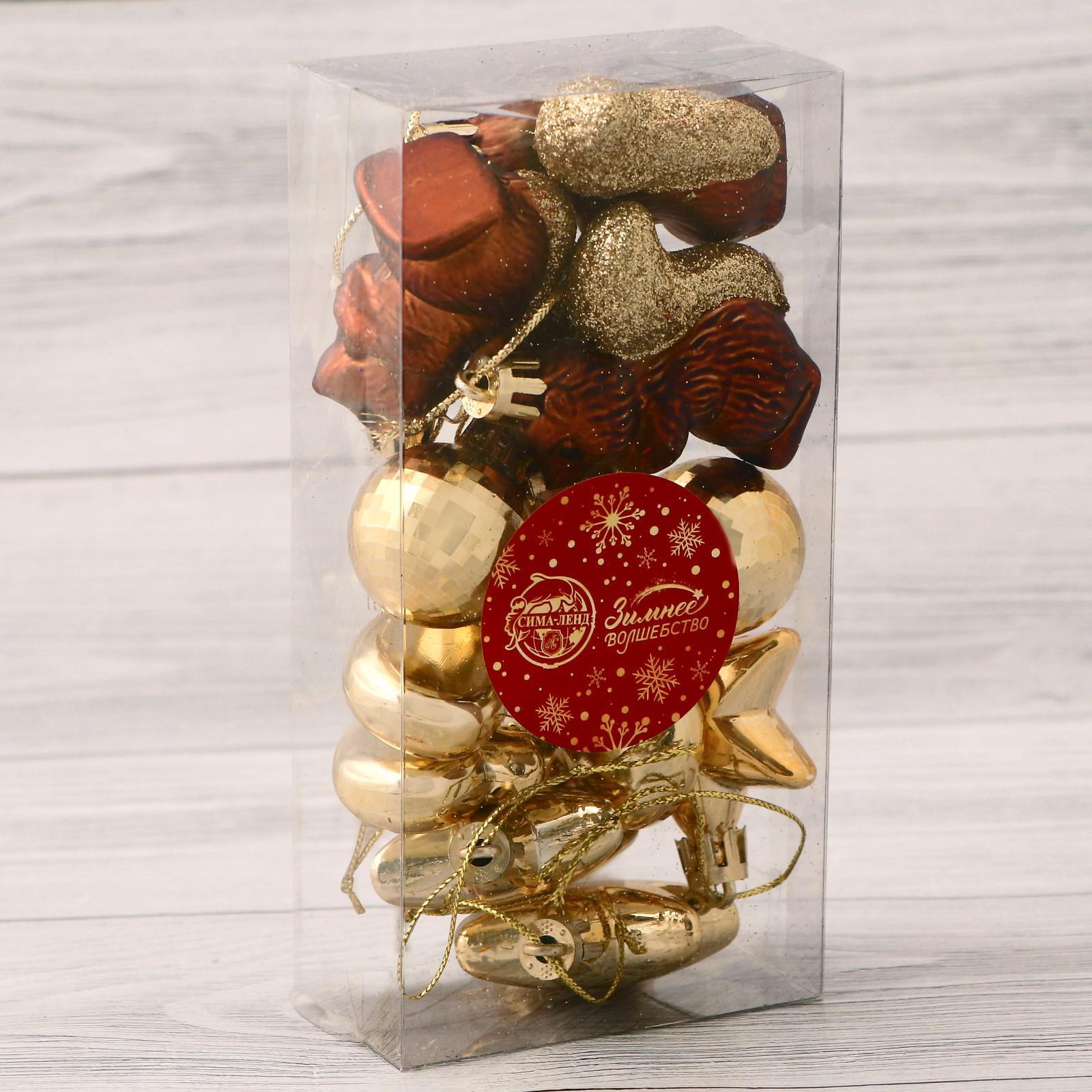 Ёлочные игрушки, пластик, набор 12 шт "Диско новый год" золото коричневый