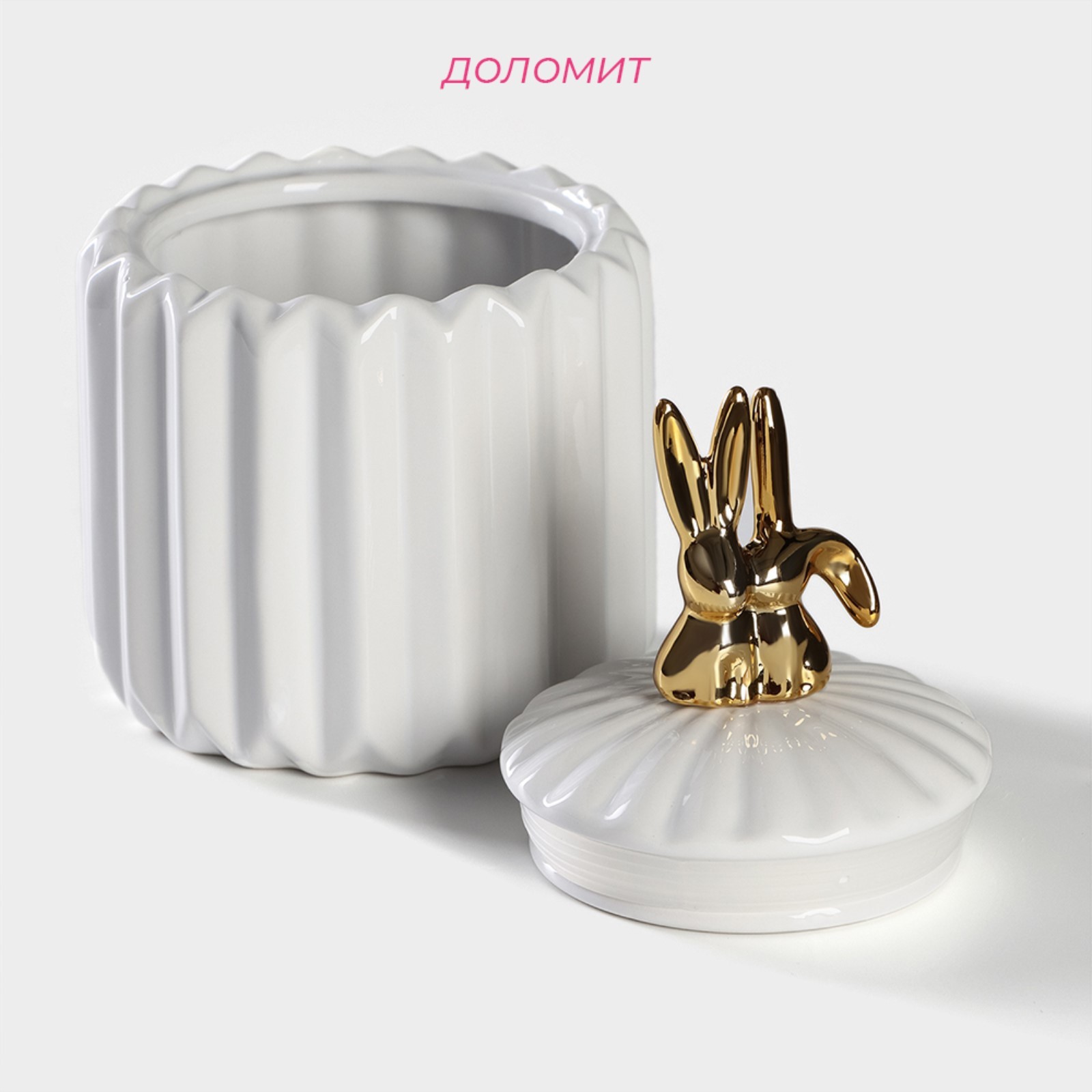 Банка керамическая для сыпучих продуктов Золотой зайка, 900 мл, размер 18х12х12 см, цвет белый. Это яркий и практичный экземпляр функциональной посуды. Банка отлично подойдет для хранения любых сухих продуктов, вы сможете пересыпать в неё кофе, чай, сахар, специи и даже крупы.