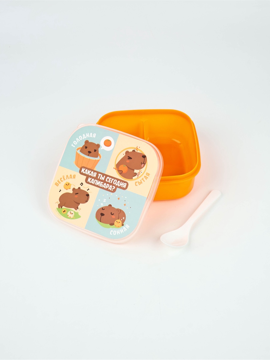 Ланч бокс контейнер капибара 3 отделения с ложкой. Размер 15х15х6 см.