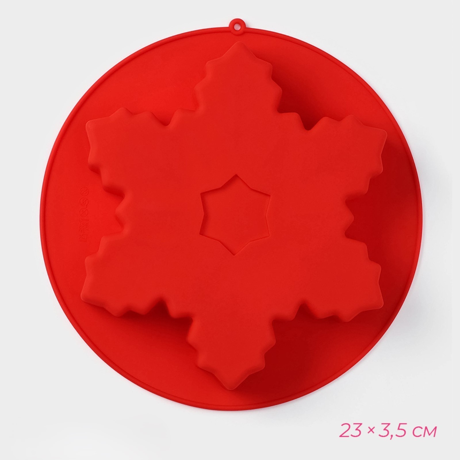 Форма для выпечки новогодняя Снежинка, силикон, 23×3,5 см, цвет красный