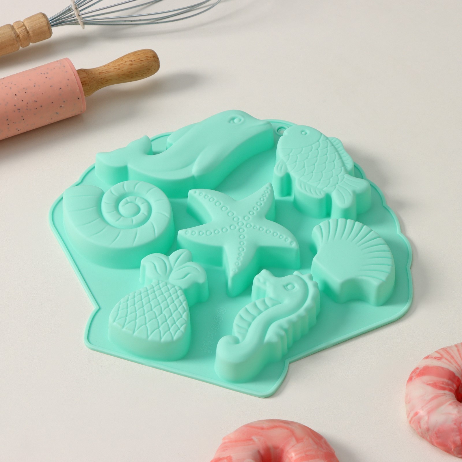 Форма для выпечки Доляна Морские обитатели, силикон, 26×24×2,5 см, 7 ячеек,
