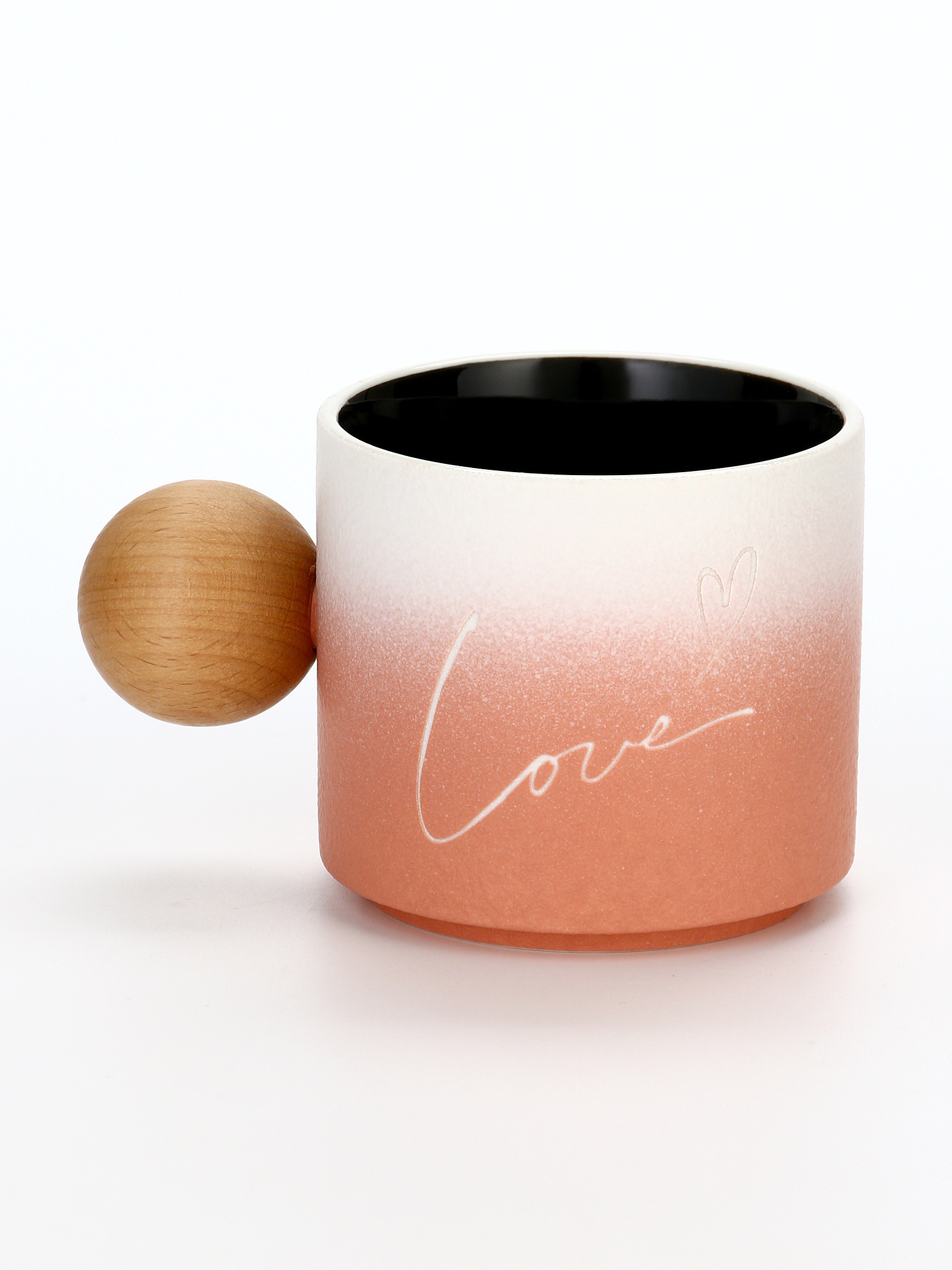 Кружка керамическая Love с деревянной ручкой 300 мл