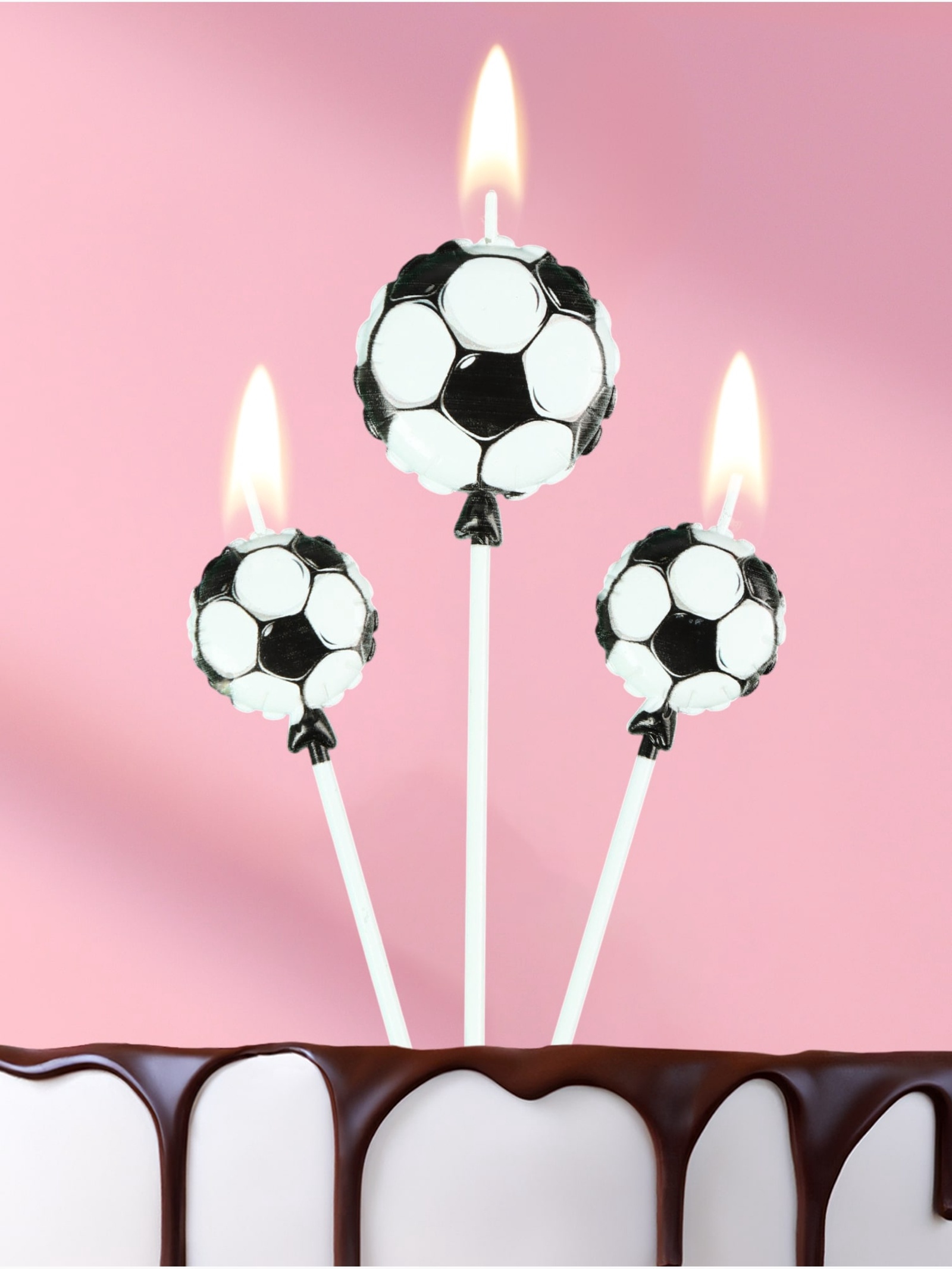 Набор свечей в торт Футбольные мячи 3 шт, на шпажке
