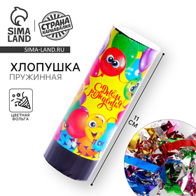 Хлопушка пружинная поворотная С Днём Рождения, 11 см