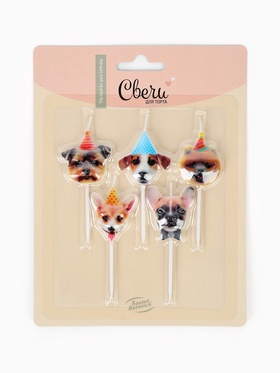 Набор свечей для торта Собачки, 6 см, 5 шт.