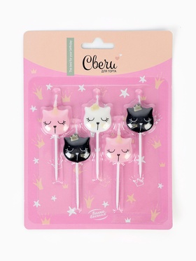 Набор свечей для торта Котенок Принцесса, металлик, 6 см, 5 шт.