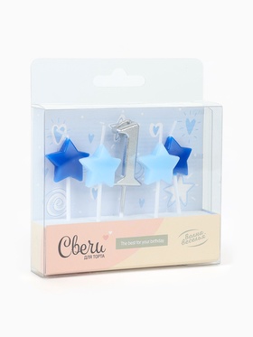 Свечи для торта 1-ый День Рождения Мальчика, серебро/голубой, 2.5×3.5 + 4