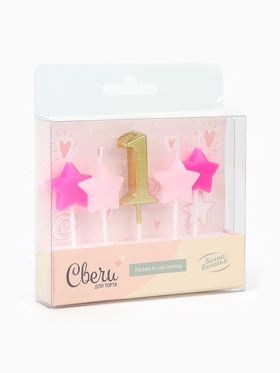 Свечи для торта 1-ый День Рождения Девочки, золото/розовый, 2.5×3.5 + 4 см,