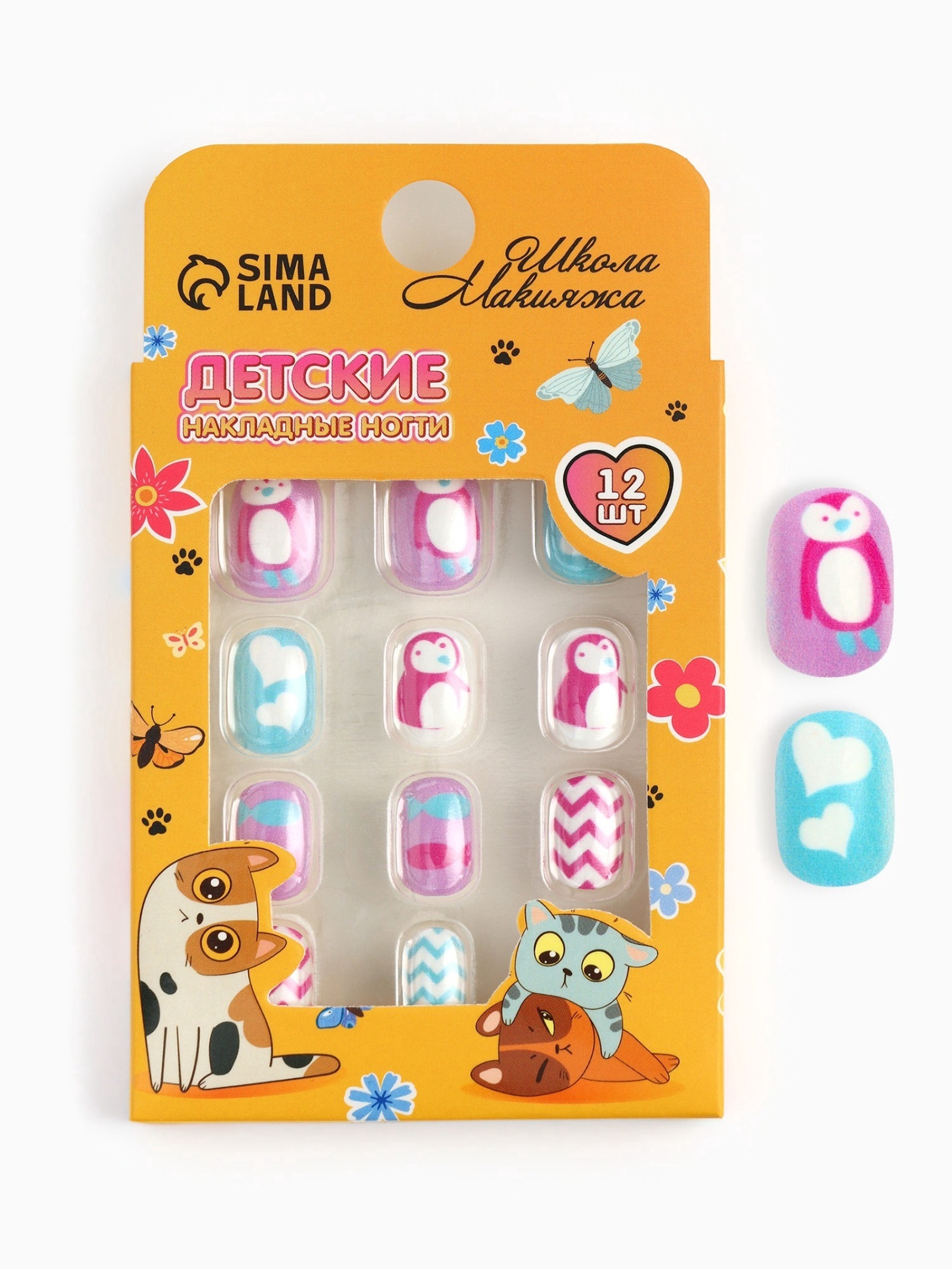 Детские накладные ногти Пингвиненок 12 шт 10664345