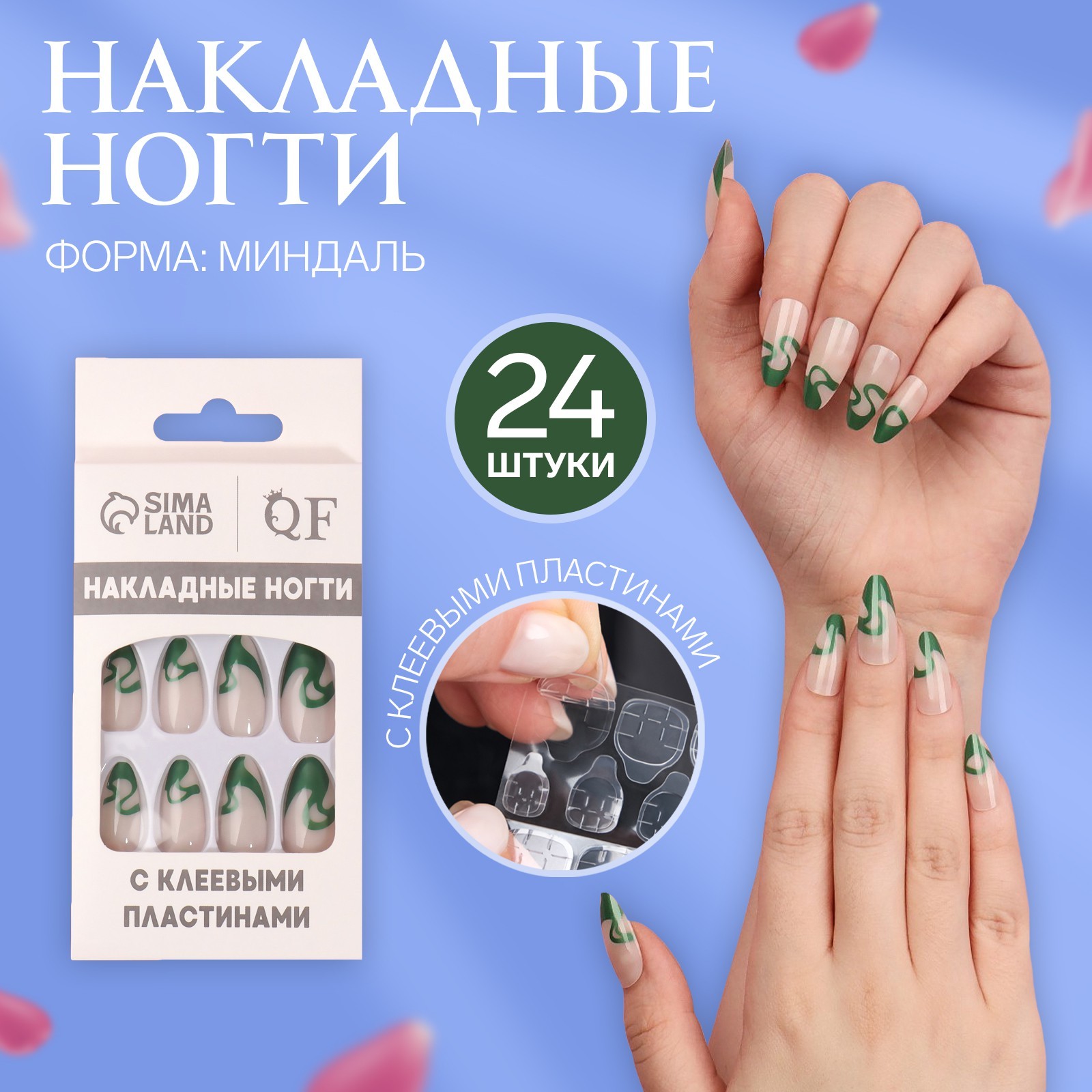 Накладные ногти Pattern 24 шт с клеевыми пластинами,форма миндаль,бежевые, зелёные