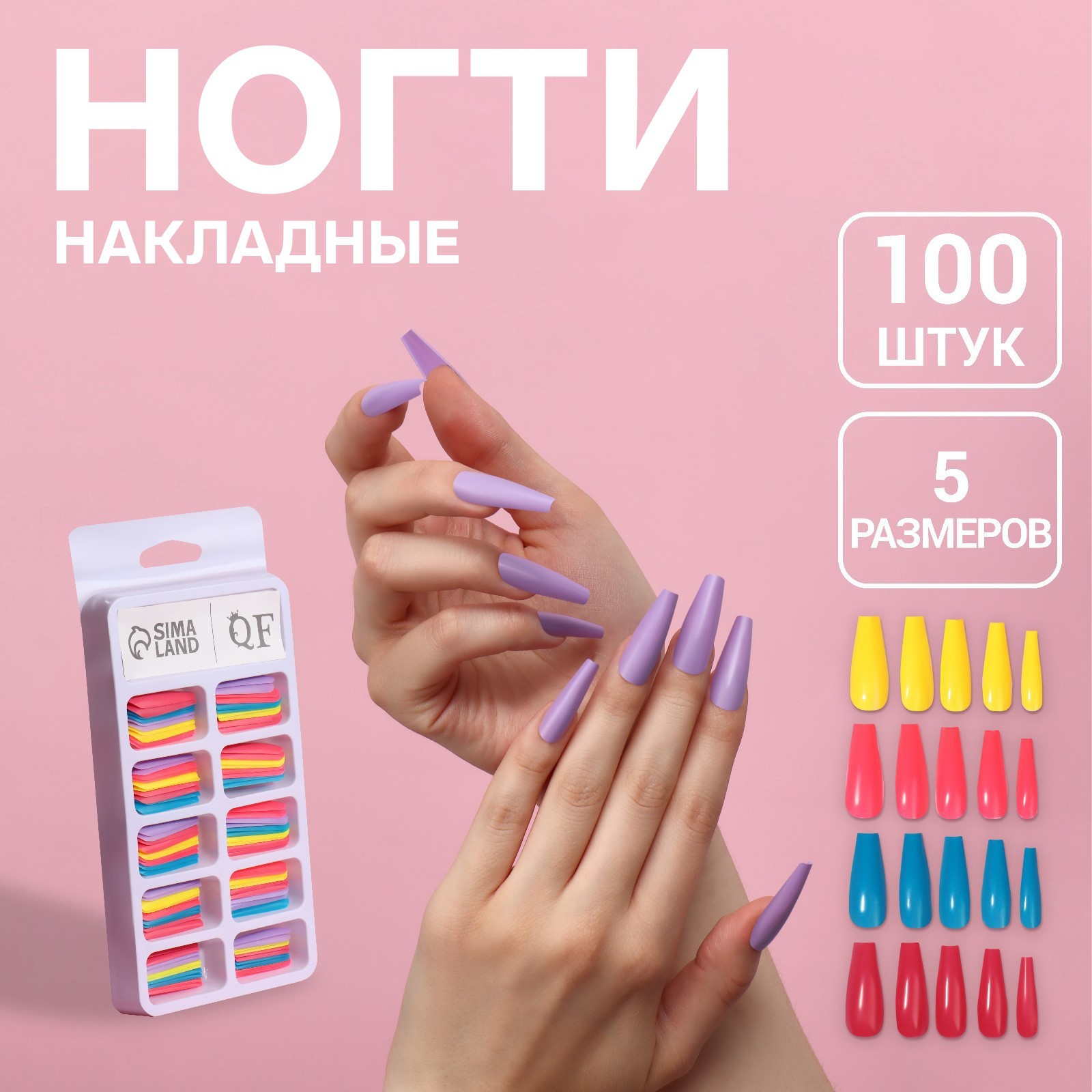 Накладные ногти «Цветной фейерверк 100 шт форма балерина в контейнер разноцветные
