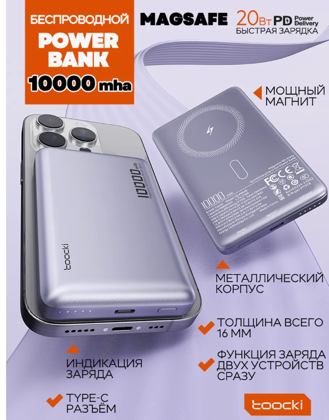 Повербанк для iphone магнитный magsafe powerbank 10000 mAh