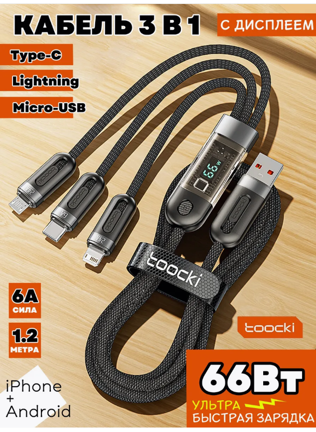 Кабель type-c lightning micro usb быстрая зарядка 3 в 1