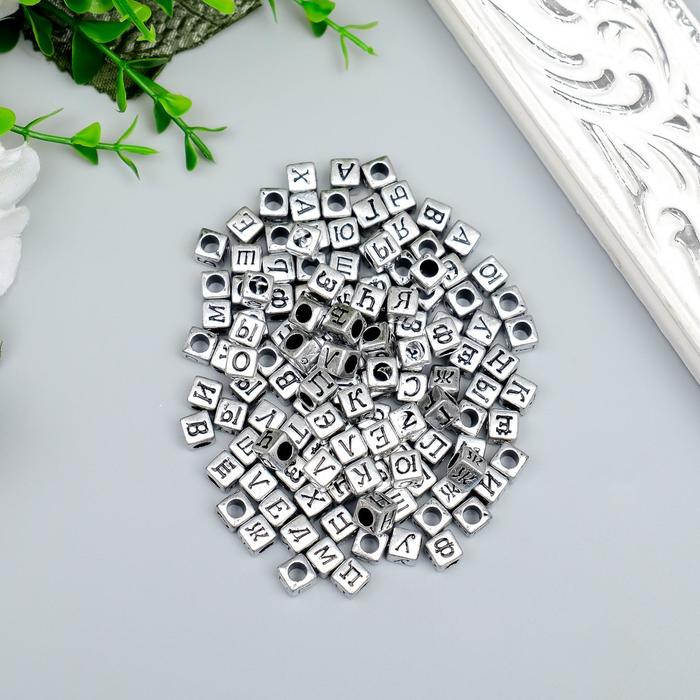 Набор бусин для творчества пластик Русские буквы на кубике серебро 20 гр 0,6х0,6 см