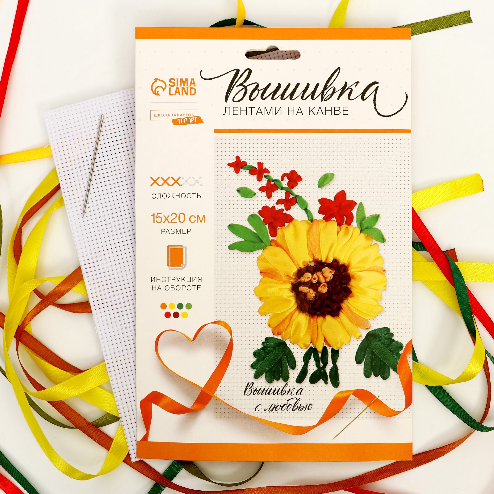 Вышивка лентами на канве Подсолнух Набор для творчества