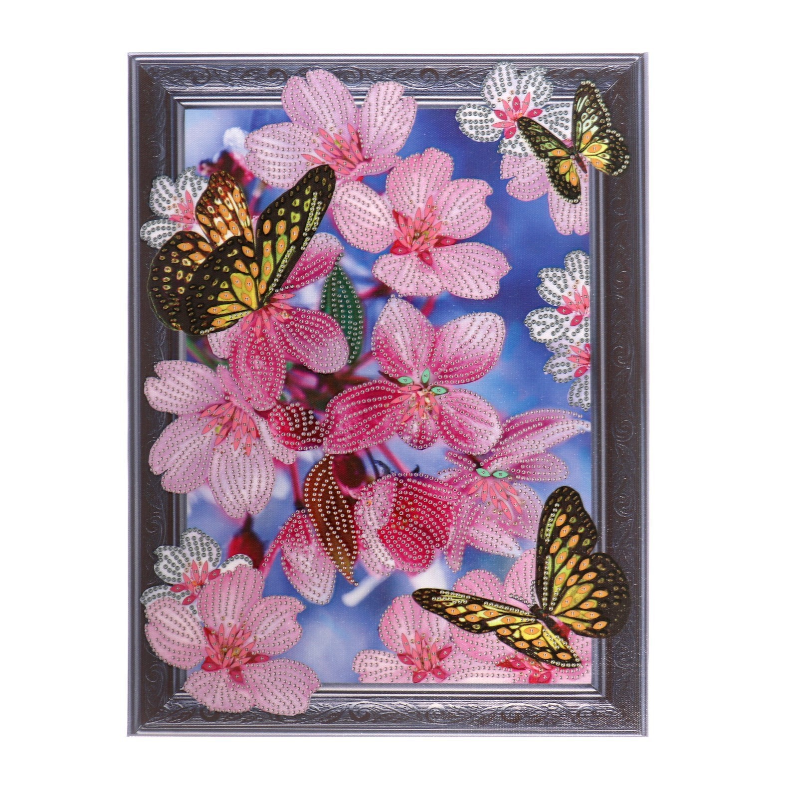 Алмазная мозаика с частичным заполнением и форменными стразами на раме Цветы 30 х 40