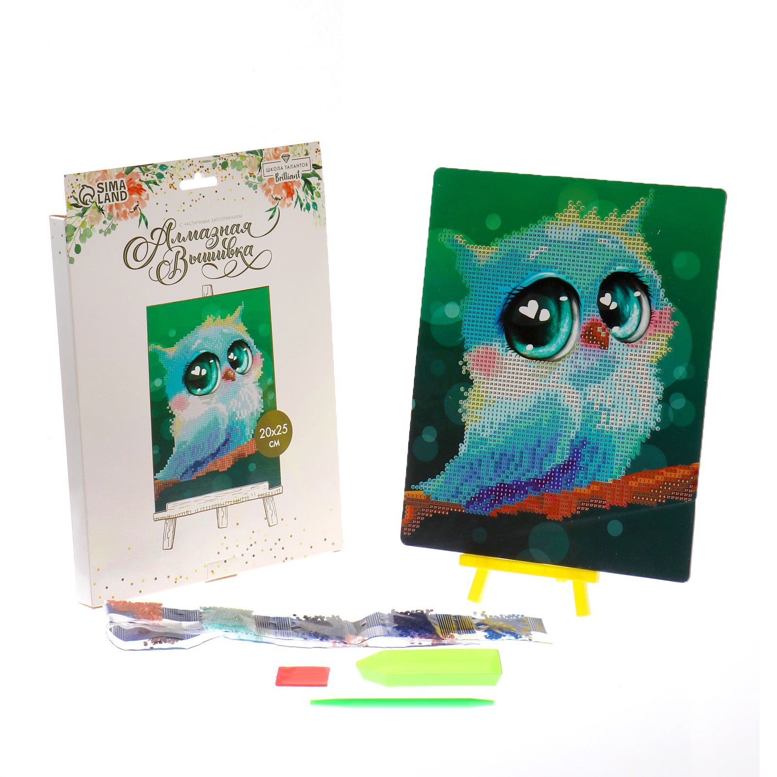 Алмазная мозаика с частичным заполнением на подставке для детей Совушка