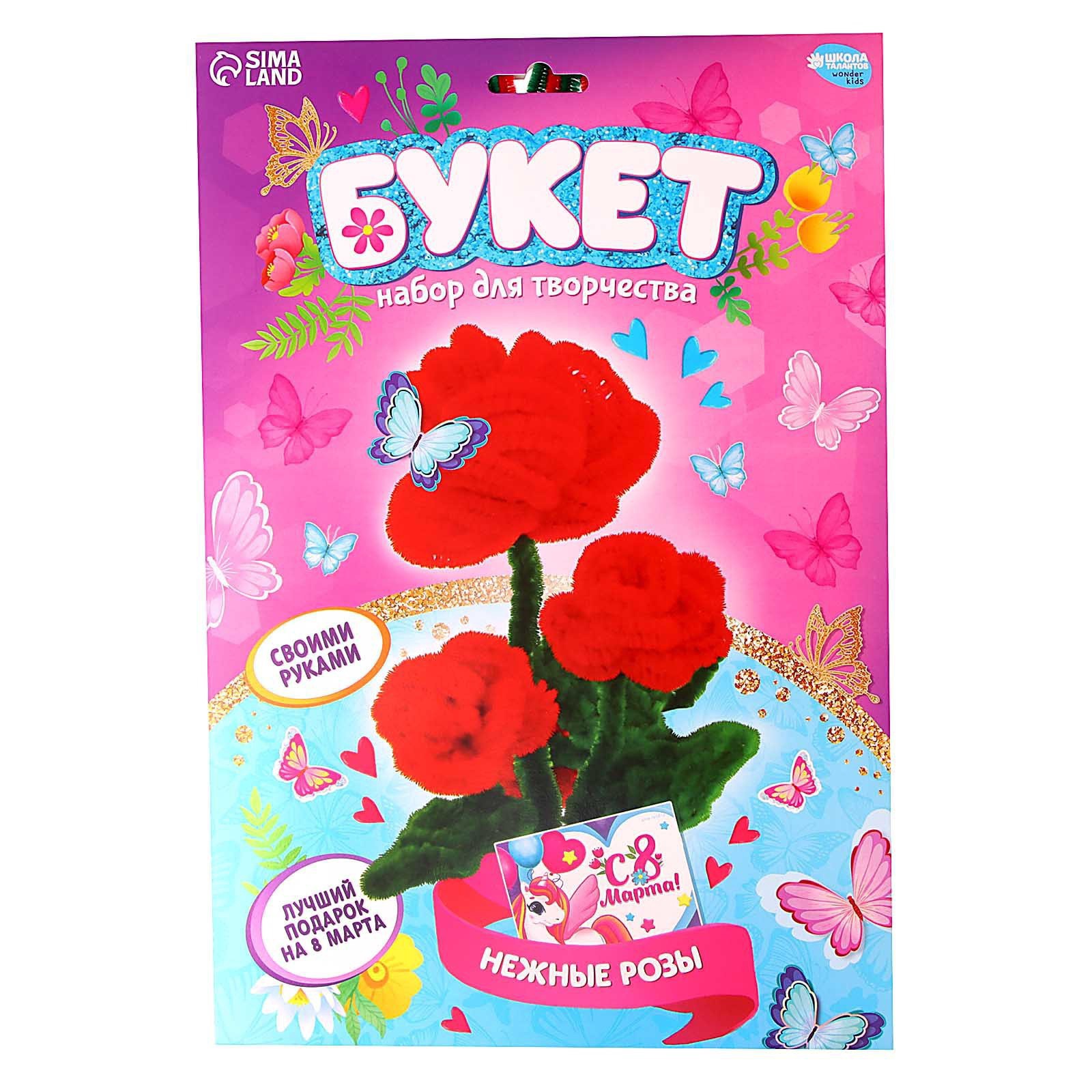 Цветы своими руками из меховых палочек Букет нежных роз набор для творчества на 8 марта