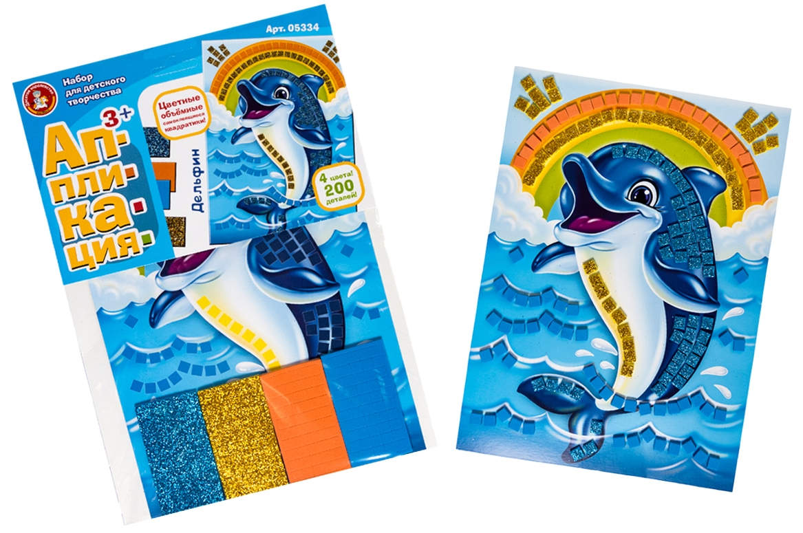 Набор для творчества.Аппликация"Дельфин"(4 цв,200 эл)
