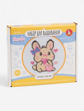 Вышивка крестиком на пяльцах Зайчишка с сердечком, 15 см, набор для творчества