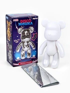 Декор фигурки зеркальной мозаикой Медведь, серебро