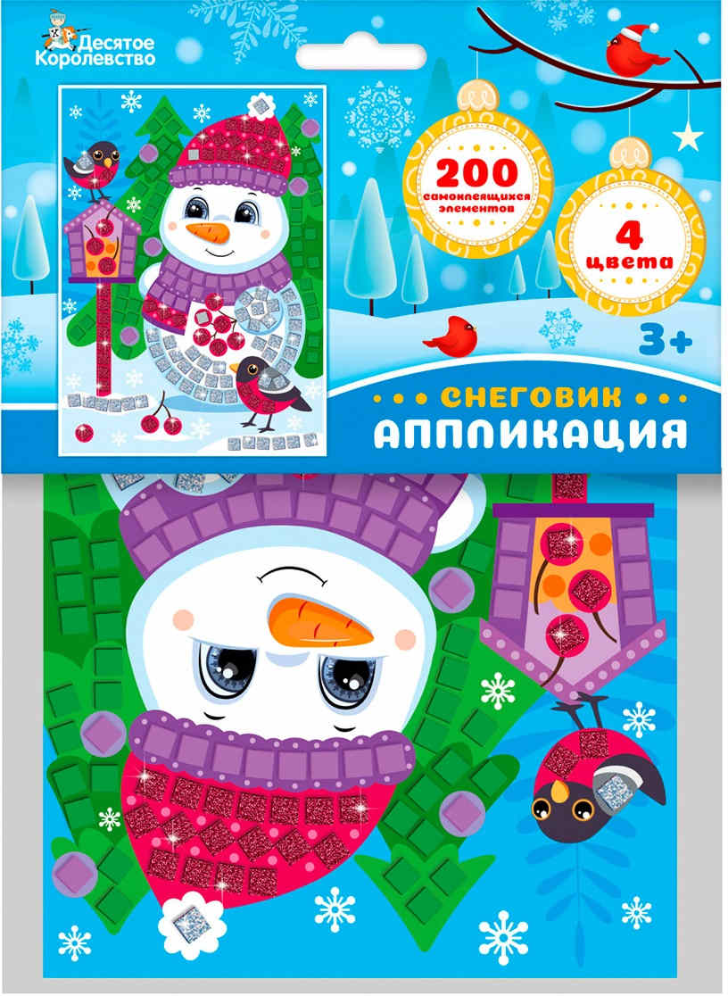 Набор для творчества.Аппликация 'Снеговик' (4 цв, 200 эл)