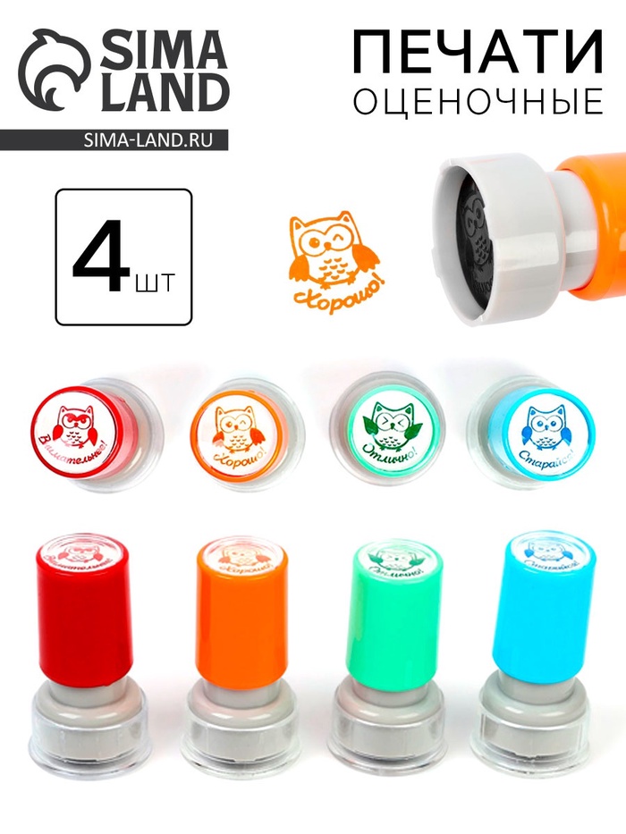 Оценочные печати "Совушка" набор 4 шт