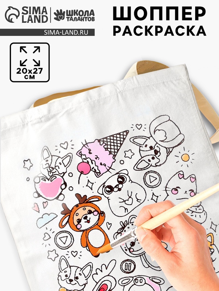 Сумка-Шоппер, раскраска «Зверята» 20×27 см