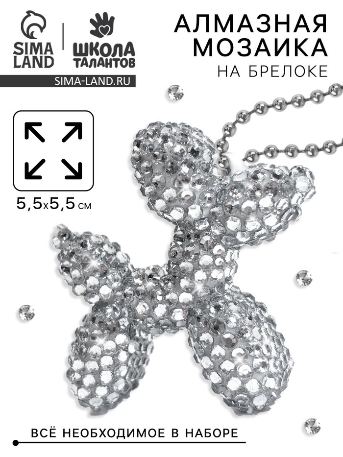 Алмазная мозаика на брелоке Собачка серебро