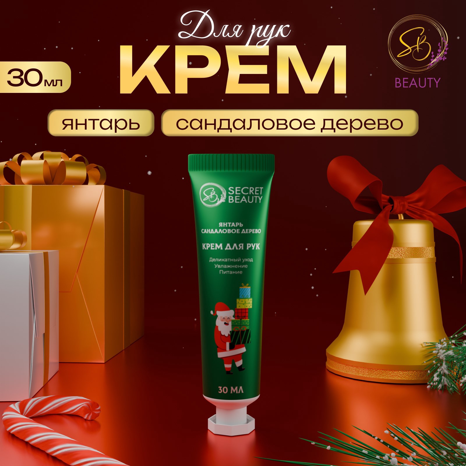 Крем для рук новогодний «Янтарь и сандаловое дерево», 30 мл